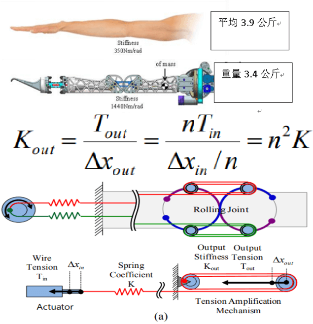 定滑轮组减速机构:关节刚度提升n平方倍。